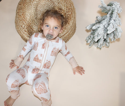 Bamboo zip romper- Gingerbread (BOGO 40% OFF)